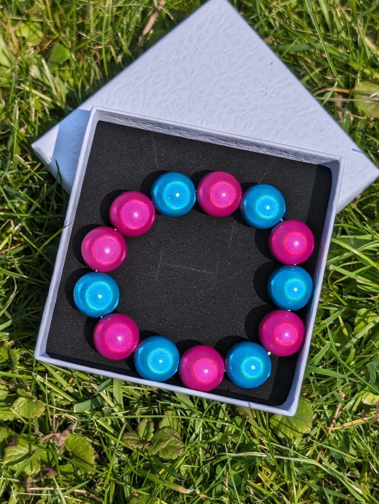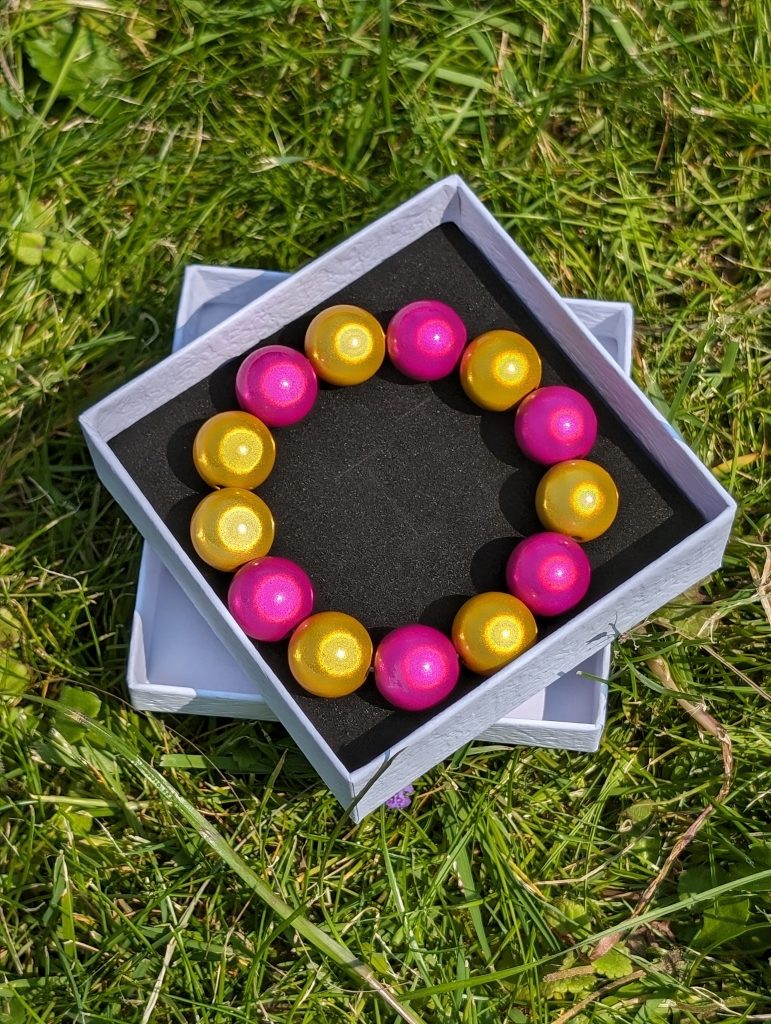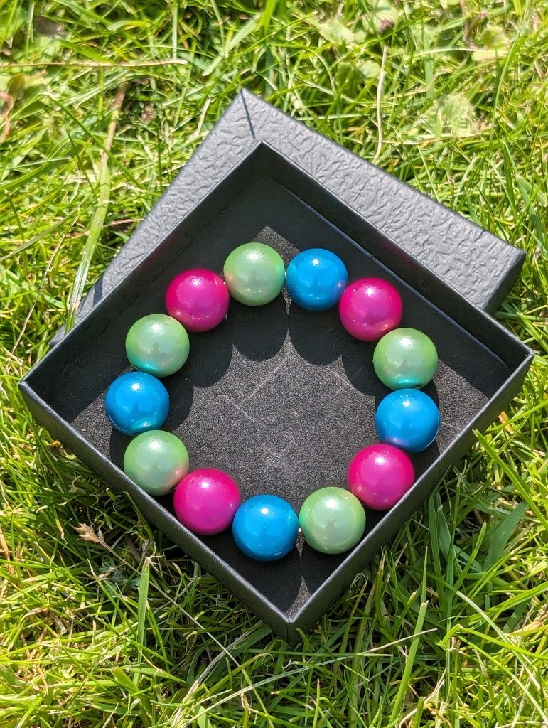 Armband „Miracle beads“, verschiedene Farben, schimmernd. Große Perlen (ca 14 mm), one size.