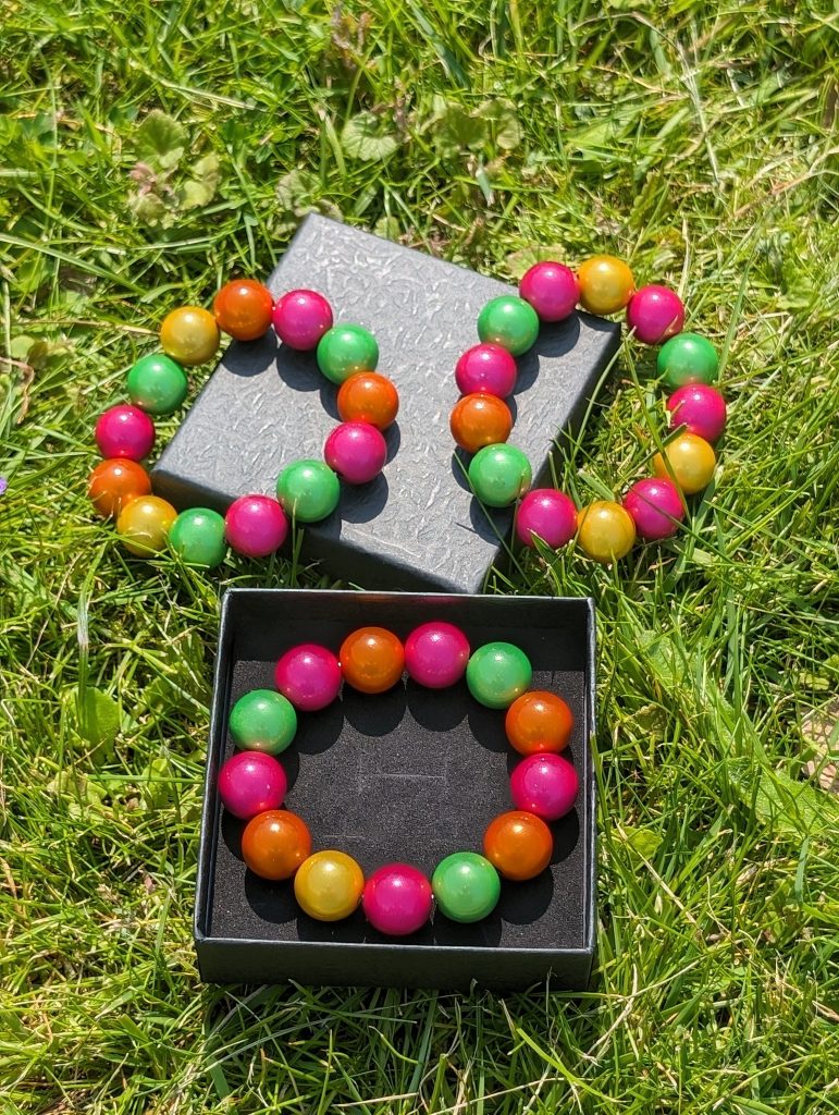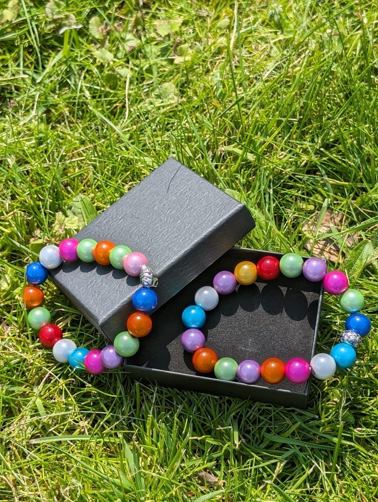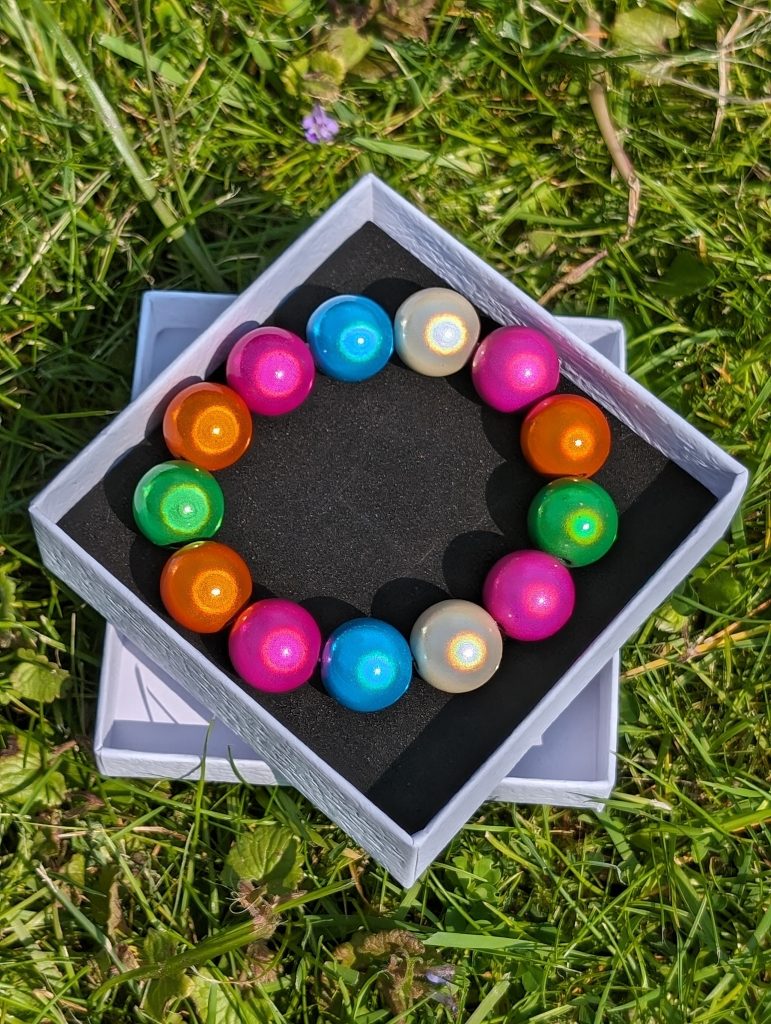 Armband „Miracle beads“, bunt schimmernd. Kleine Perlen (ca 10 mm), one size, Preis je Armband: 15,90 €